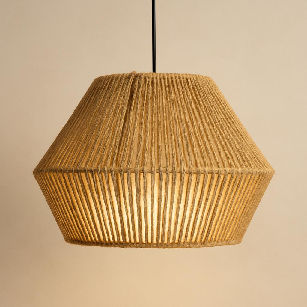 Transforma tu espacio con la elegancia natural de la lámpara colgante "copal", una pieza artesanal hecha a mano con un diseño moderno y cálido que aporta armonía y sofisticación a cualquier ambiente. Su estructura geométrica con acabado textil aporta textura y calidez visual, ideal para salas, comedores o estudios.